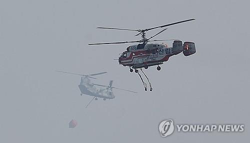 특히 산림청은 이날 오전 진화 작업에 담수 용량 8천ℓ급 대형 진화 헬기 1대도 추가 투입했다.