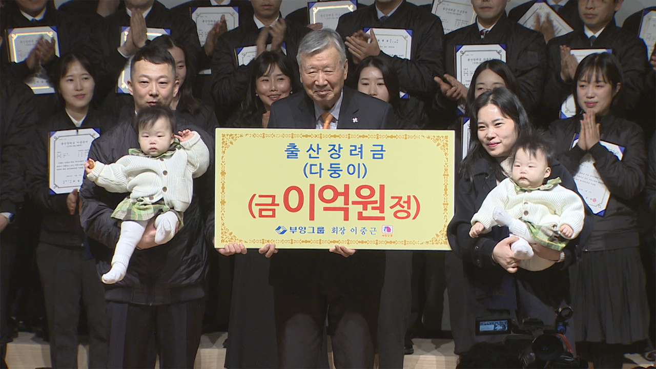 부영그룹은 지난해부터 자녀를 낳은 직원들에게 한명당 1억원의 출산장려금을 주고 있는데 현재까지 총 70억원, 올해는 28억원 정도 지급될 예정입니다.