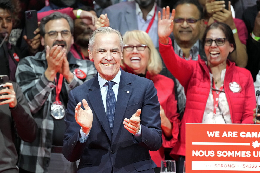마크 카니 캐나다 총리가 29일(현지시간) 온타리오주 오타와 소재 자유당 선거본부에서 총선 승리를 확인한 후 활짝 웃고 있다. AP연합뉴스 |