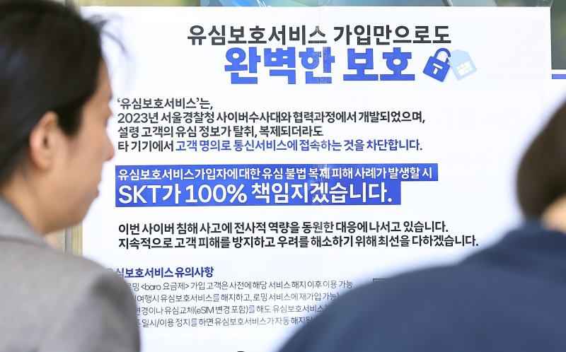 29일 서울 종로구 T월드 매장 앞에 유심보호서비스 가입 안내문이 붙어 있다. 뉴스1 |