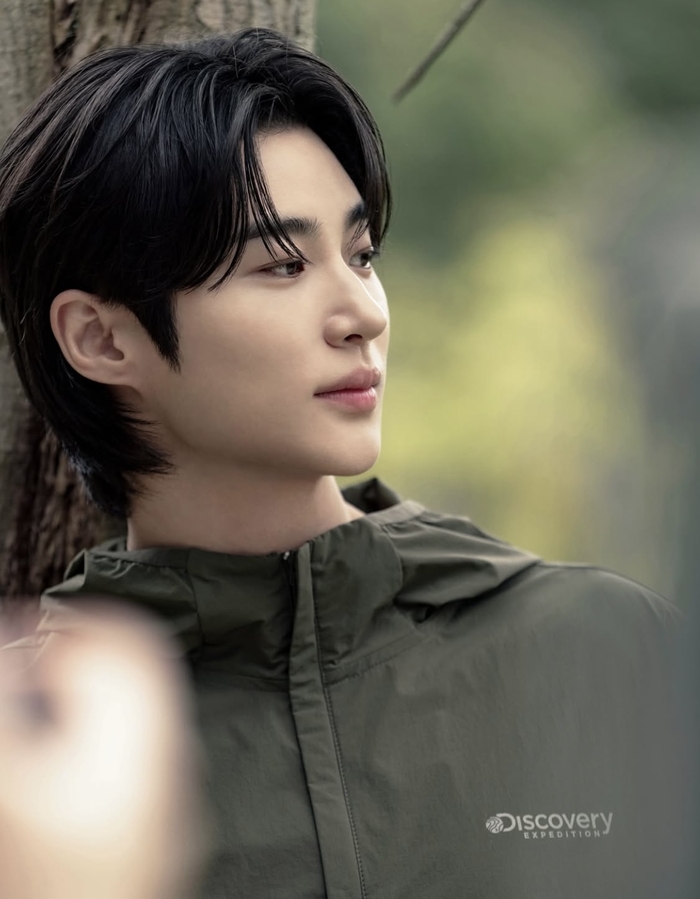 사진 속 변우석은 해당 아웃도어 브랜드의 의류와 신발, 용품 등의 테크웨어 착장하고 스타일리시한 패션을 선보이고 있다.