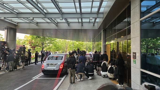 현장에는 취재진과 경호원을 포함해 많은 인력이 대기 중이었다. 강서경찰서에서도 출동해 안전사고 예방에 만전을 기하는 모습이었다.