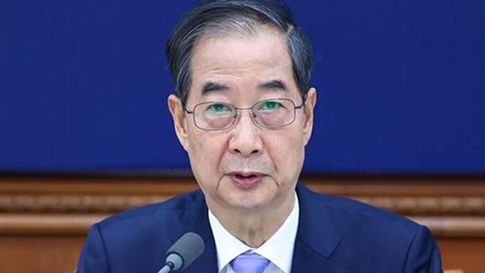 한덕수 대통령 권한대행이 굳은 표정으로 국무회의장에 들어섭니다.