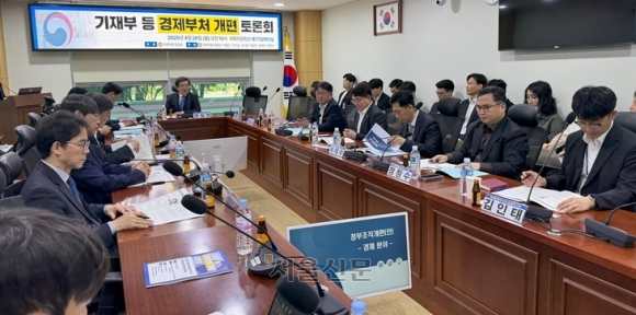 지난 28일 더불어민주당 정일영 의원을 비롯한 기재위 소속 의원들이 기획재정부 개편 방향을 논의하는 토론회를 국회 의원회관에서 열었다. 안주영 전문기자 |