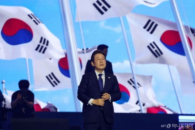 이 후보는 지난 27일 경기 킨텍스 제 2전시장에서 당 후보로 선출된 후에도 대형 태극기를 배경으로 수락 연설에 나섰다. 당시 이 후보는 "더 이상 과거에 얽매여서, 이념과 사상 진영에 얽매여서, 분열과 갈등을 반복할 시간이 없다"며 "'대한민국'이라는 국호 그대로 이 땅 위 모든 사람이 주인으로 공평하게 살아가는 '진짜 대한민국'으로 나아가자"고 말했다.