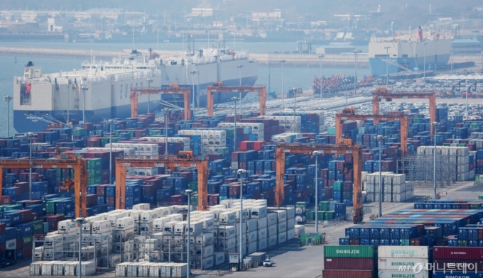 (평택=뉴스1) 김영운 기자 = 31일 오후 경기 평택시 포승읍 평택항 수출 야적장에 컨테이너들이 쌓여있다. 통계청이 이날 발표한 '2025년 2월 산업활동동향'에서 국내 생산은 0.6%, 소비는 1.5%, 투자는 18.7% 모두 증가하면서 '트리플 증가'를 기록했다고 밝혔다. 2025.3.31/뉴스1 |