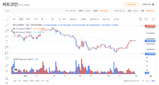 국내 주요 거래소에서도 비슷한 흐름을 보였다. 빗썸 기준 BTC는 전일 대비 0.63% 내린 1억 3609만 3000원을 기록했다. ETH는 1.41% 내린 259만 원, XRP는 2.03% 떨어진 3231원을 기록했다.