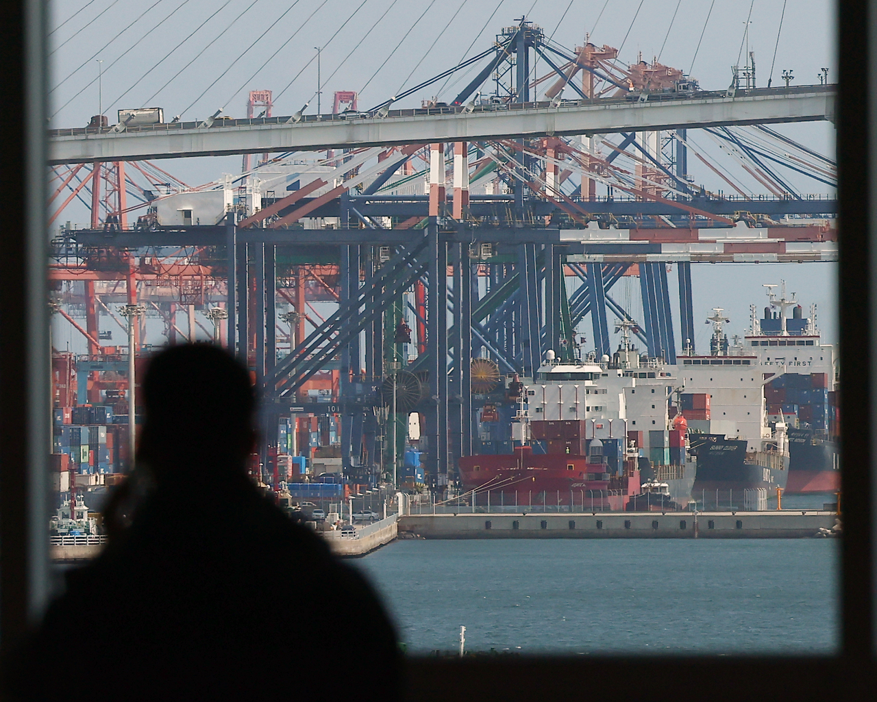 부산 동구 부산항국제여객터미널 유리창으로 부산항 북항이 보이고 있다. [연합] |