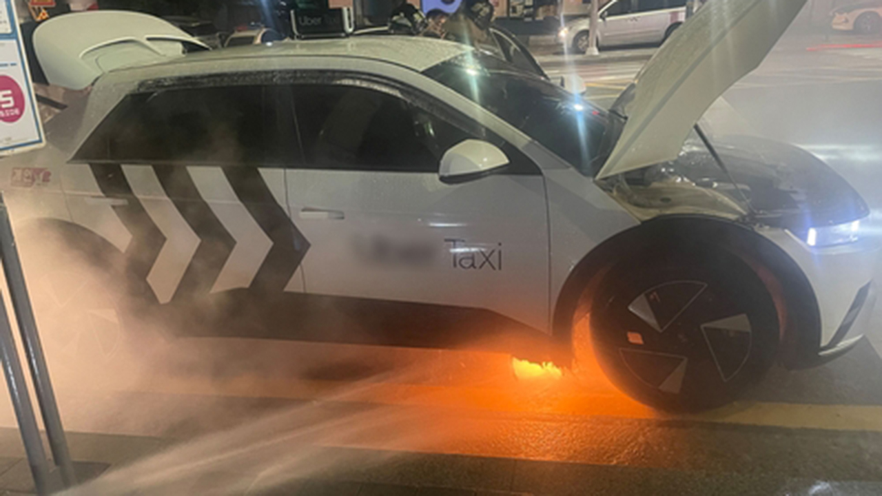 도로 위 쇳덩이에 부딪힌 전기차 택시서 불…열폭주 추정