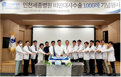 인천세종병원은 지난 28일 병원 지하 1층 비전홀에서 ‘비만대사수술 1천례 달성 기념행사’를 열었다고 30일 밝혔다. 전담 센터 출범 2년 5개월여만이다.