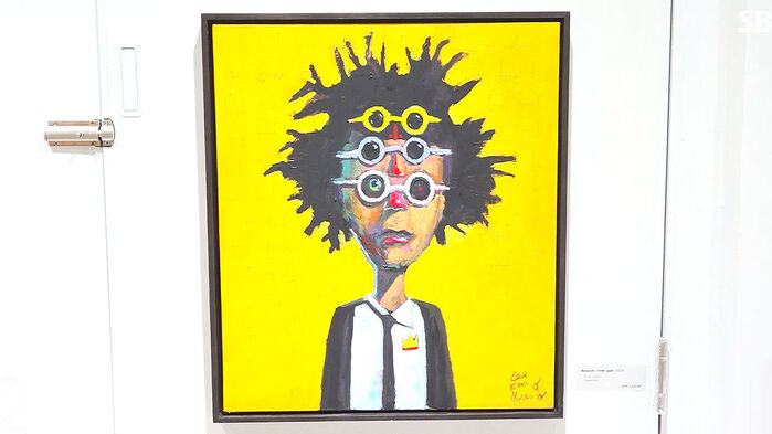 사람이 쓰고 있는 안경 말고도 캔버스 여기저기에 수없이 많은 안경들이 늘어서 있습니다.