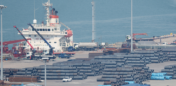 경기 평택시 포승읍 평택항 수출 야적장에 철강 제품이 쌓여있는 모습. 뉴스1 |