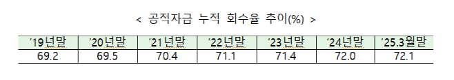 아시아투데이 김동민 기자 = 금융위원회가 1997년 경제위기 이후 투입됐던 공적자금에 대한 회수율이 올해 1분기 누적 기준으로 72.1%인 것으로 집계됐다고 30일 밝혔다. 공적자금 168조7000억원 중 121조6000억원이 회수된 상황이다.