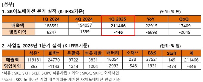 SK이노베이션 1분기 실적 [표=SK이노베이션] |
