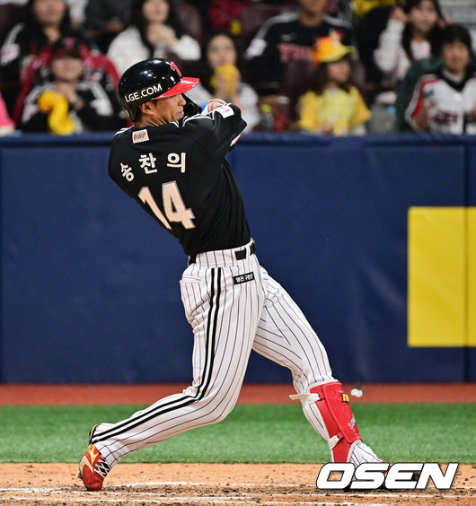 [OSEN=대전, 이상학 기자] 프로야구 LG 트윈스 외야수 송찬의가 류현진(한화 이글스)을 상대로 2번 타순에 들어섰다.