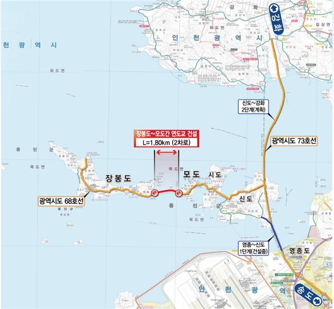 인천시는 2023년 5월 옹진군 장봉도와 신·시·모도 간 잇는 구간(15.9km)을 광역시도(제68호선)로 노선을 지정했다.