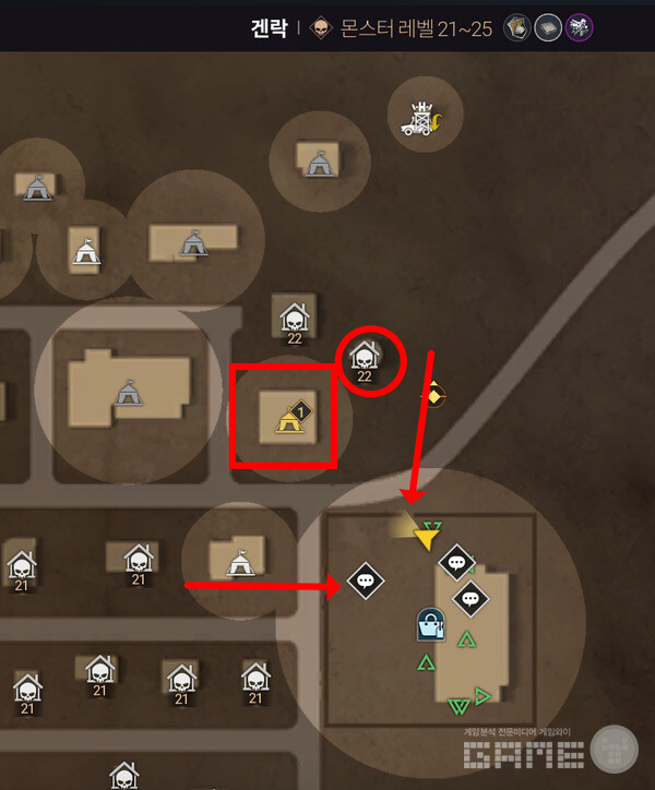 서쪽과 북쪽 2군데를 다 공략해야 한다. 동그라미 급수탑에 올라 저격을 마쳐도 좋다. 다키스트 데이즈 /게임와이 촬영 |