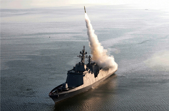 북한이 지난달 28~29일 신형 구축함 최현호에 탑재된 초음속 순항미사일과 함대함 전술유도무기 등을 시험 했다고 30일 노동신문이 보도했다. [노동신문=뉴스1]