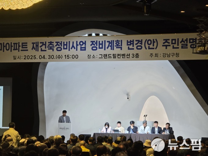 [서울=뉴스핌] 송현도 기자 = 30일 정비업계에 따르면 강남구청은 이날 강남구 그랜드힐컨벤션에서 오후 3시 은마아파트 재건축 정비계획 변경안 주민 설명회를 열었다. 2025.04.30 dosong@newspim.com |