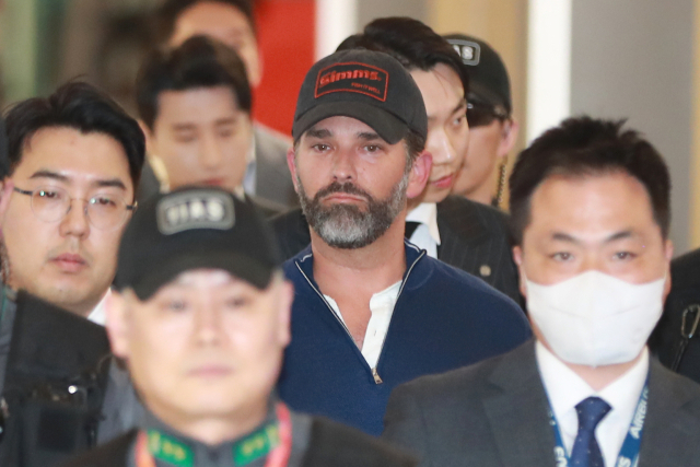 이날 업계에 따르면 트럼프 주니어는 전날 오후 6시 25분께 서울김포비즈니스항공센터를 통해 입국해 정용진 신세계그룹 회장 자택에서의 만찬을 시작으로 1박 2일간의 짧은 일정을 소화했다. 트럼프 주니어는 이날 이른 아침부터 재계 총수들과 잇따라 면담을 가졌다. 관계자 외 접근이 차단된 조선팰리스호텔 내 보안 구역에서 진행됐으며 총수들은 해당 구역으로 향하는 ‘핫라인’을 이용하는 등 극비리에 이동했다. 대기업의 경우 개별 회동, 중견기업은 집단 회동으로 각각 30분~1시간가량 진행했다. 이후 트럼프 주니어는 오후 11시 30분께 인천공항을 통해 미국으로 출국했다. 30시간이 채 안 되는 짧은 시간 동안 한국의 주요 그룹 총수들을 두루 만난 것이다.