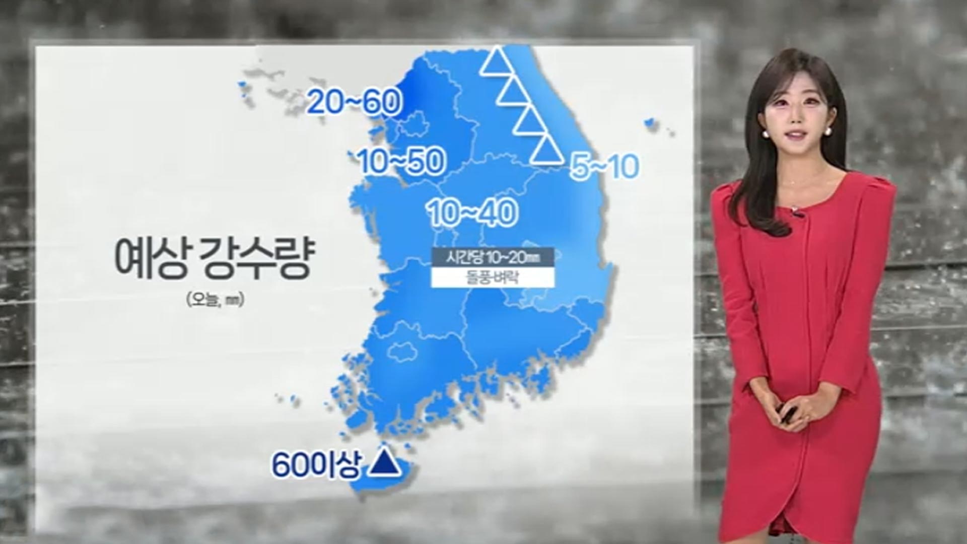 곳에 따라 시간당 20mm 안팎의 강한 비가 집중되겠고, 돌풍과 벼락도 동반되겠습니다.