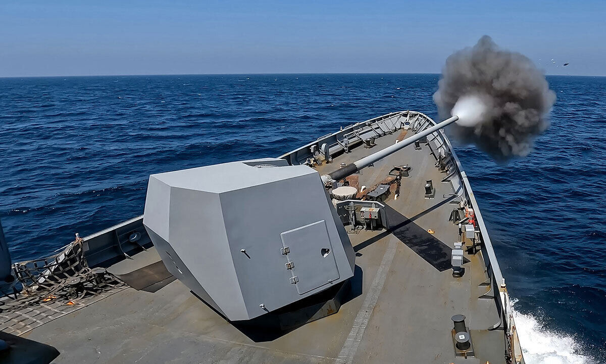 해군3함대 광주함이 지난 4월 28일 남해상에서 함포를 사용해 대함 실사격 훈련을 하고 있다. 해군 제공 |