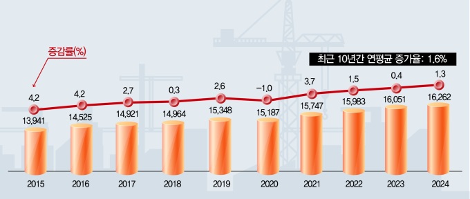 지난해 한 해 동안 도로를 통행한 차량을 하루 평균으로 산출(평균 일교통량)한 결과, 전년 대비 1.3% 증가한 1만6262대로 나타났다. 도로 교통량은 2015~2024년 10년간 연평균 1.6% 증가하는 추세다. 자동차 등록대수가 전년 대비 1.3% 상승한 것이 주요 원인 중 하나로 보인다.