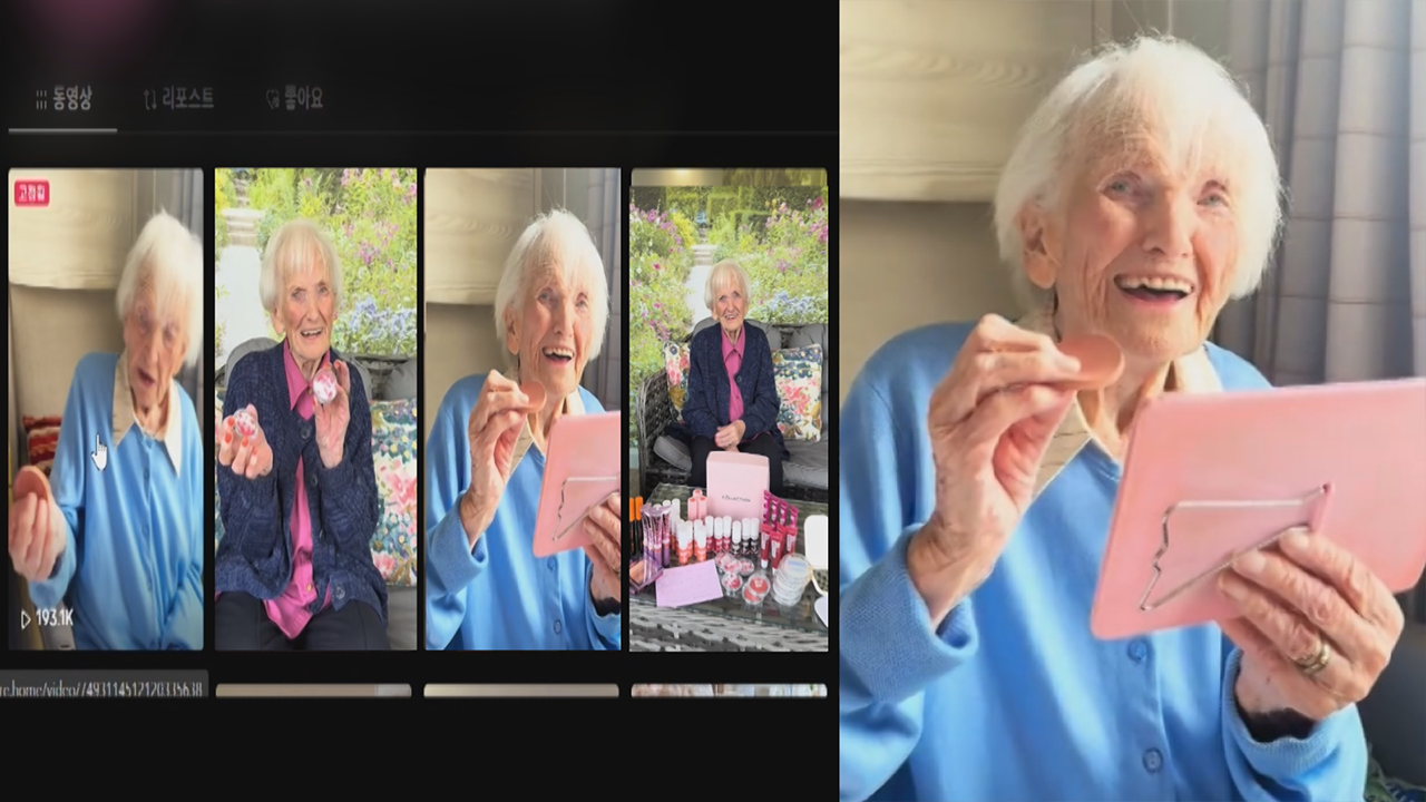 "어떤 사람들은 이렇게 하거든요? 볼을 올리려고. 나는 주름이 많아서 안 돼요. 모자란 거 같으면 더 바르면 돼요. 더 바르고 더 발라요. (웃음)"