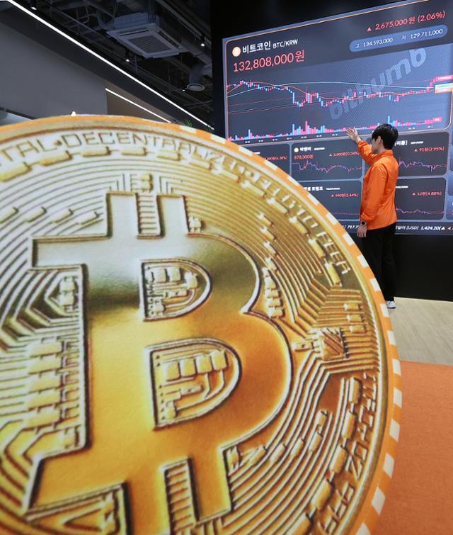 서울 서초구 빗썸라운지 전광판에 비트코인 등 가상자산 시세가 표시되고 있다. 뉴스1 |