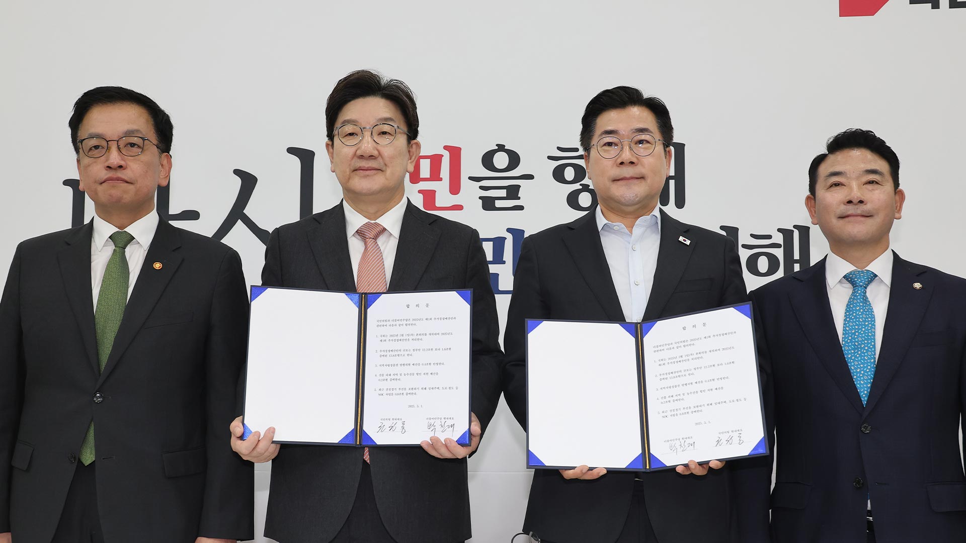 국민의힘 권성대 원내대표와 민주당 박찬대 당대표 직무대행은 합의문을 통해 지역사랑상품권 발행지원 예산을 4천억원 반영한다고 밝혔습니다.