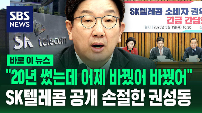 오늘(1일) 열린 국민의힘 SK텔레콤 간담회에서 권성동 원대대표가 "어제 20년 동안 쓴 SK텔레콤과의 계약을 해지했다"며 항의의 뜻을 담은 결단 이었다고 밝혔습니다. 영상으로 확인하시죠.