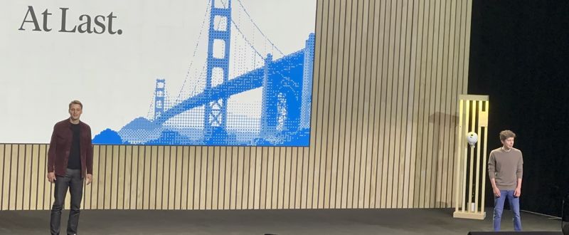 샘 올트먼 오픈AI 최고경영자(CEO)와 월드코인 개발사 '툴스 포 휴머니티'(Tools for Humanity·TFH) 알렉스 블라니아 CEO가 30일(현지시간) 미국 샌프란시스코에서 개최된 월드코인 '앳 라스트'(At Last) 행사에 나란히 서있다. 사진=홍창기 기자 |