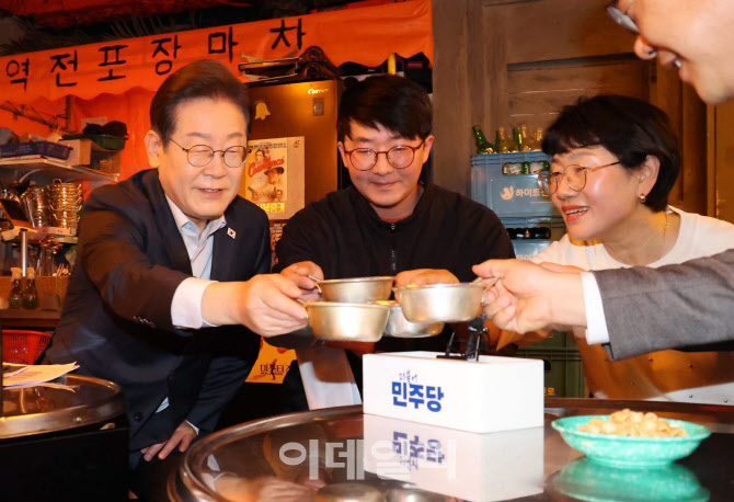 [이데일리 노진환 기자] 이재명 더불어민주당 대통령 후보가 노동절인 1일 오후 서울 종로구 삼일대로 한 식당에서 열린 민생시리즈2 <비전형 노동자 간담회>에서 참석 노동자들과 탄산음료로 건배하고 있다.