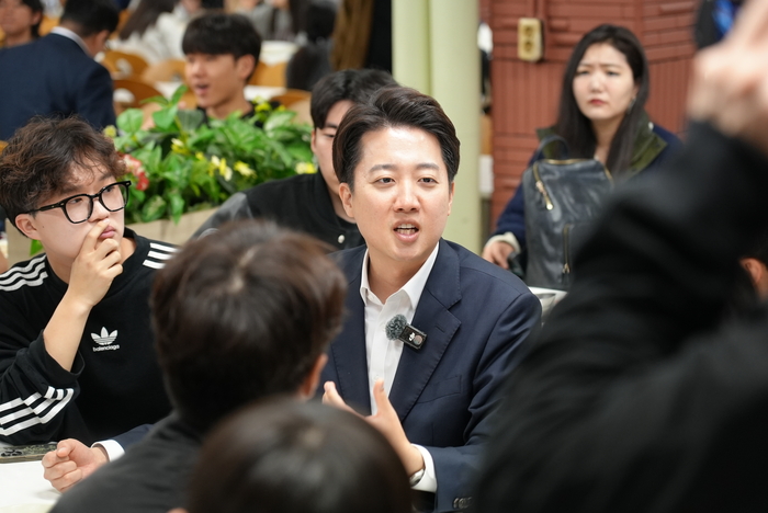 이준석 개혁신당 대선 후보가 1일 서울 동대문구 한국외국어대학교에서 '학식먹자 이준석, 한국외국어대학교로 갑니다!'를 진행했다.(개혁신당 선대본) |