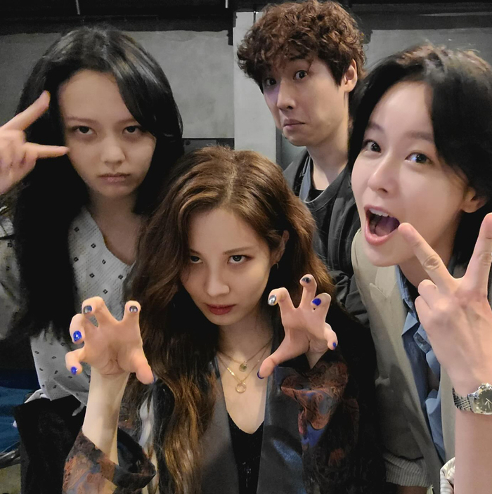 공개된 사진 속 서현은 영화의 출연진들과 함께 익살스러운 포즈를 취하며 밝고 화기애애한 분위기를 자아낸다.