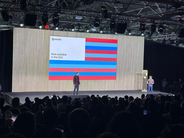 TFH 창업자 올트먼과 알렉스 블라니아는 30일 미국 캘리포니아주 샌프란시스코의 한 이벤트홀에서 전략 발표 행사를 열고 미국 진출을 선언했다. 블라니아는 "미국 이용자들은 이제 샌프란시스코, 로스앤젤레스, 애틀랜타 등 6개 도시에서 월드 ID를 발급받을 수 있다"고 밝혔다. 월드 ID는 홍채를 인식하는 첨단 카메라 '오브'에 홍채 정보를 인식시키면 발급 받을 수 있는 일종의 디지털 신분증이다. 아울러 "앞으로 미국의 가상화폐 거래소에서 월드코인을 거래할 수도 있다"고 그는 말했다. 지금까지는 미국 내에서 월드 ID를 만들 수 없었고, 월드코인 거래도 불가능했다.