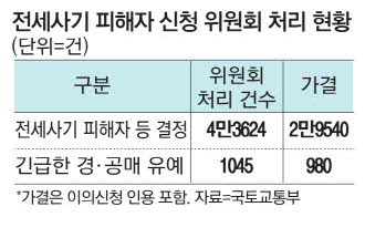 그간 위원회에서 최종 결정한 전세사기 피해자 등은 총 2만9540건이다. 긴급 경·공매 유예 협조 요청 결정은 980건으로, 결정된 피해자 등에게는 주거, 금융, 법적 절차 등이 지원되고 있다.