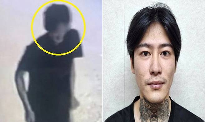 지난해 9월 26일 범행 이후 웃으며 걸어가는 박대성. 오른쪽 사진은 박대성의 머그샷. 사진=YTN 보도화면 갈무리·전남경찰청 제공 |