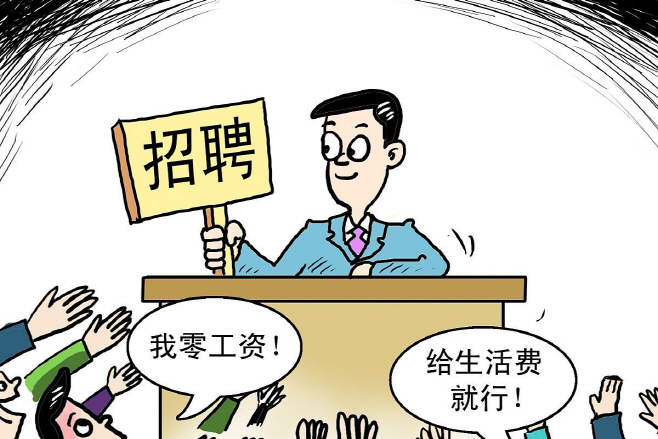 올해 대졸생들이 직면한 현실을 잘 말해주는 한 매체의 만평. 당장 월급을 주지 않는 자리에 취업하겠다는 취업 희망자들이 부지기수라는 현실을 잘 말해주고 있다./신징바오. |