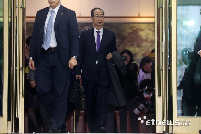 한덕수 대통령 권한대행 겸 국무총리가 1일 오후 서울 종로구 정부서울청사에서 대국민담화를 통해 사의를 표명한 뒤 청사를 나서고 있다.