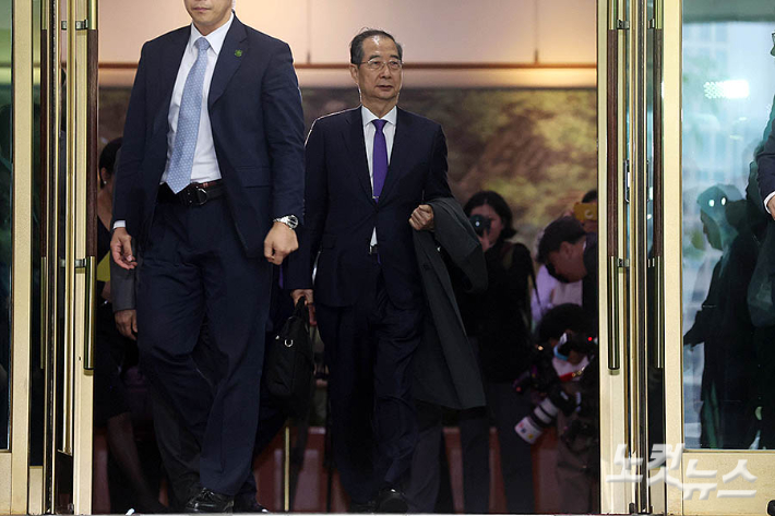 한덕수 대통령 권한대행 겸 국무총리가 1일 오후 서울 종로구 정부서울청사에서 대국민담화를 통해 사퇴를 표명한 뒤 청사를 나서고 있다. 이날 오후 한 대행은 "직면한 위기를 극복하기 위해 내가 할 수 있는 일, 내가 해야 하는 일을 하고자 직을 내려놓기로 최종 결정했다"고 사퇴 의사를 밝혔다.