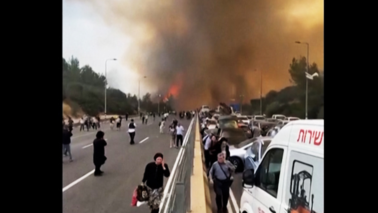 전날 예루살렘과 텔아비브를 잇는 1번 고속도로를 따라 발생한 화재로 경찰은 도로를 폐쇄하고 인근 지역 주민 수천 명을 대피시켰습니다.