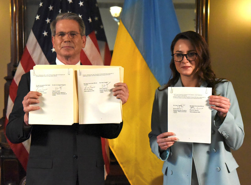 이날 율리야 스비리덴코 우크라이나 제1부총리 겸 경제장관과 스콧 베선트 미 재무장관은 워싱턴 백악관에서 광물 협정에 서명했다. 스비리덴코 부총리는 “우크라이나의 안보, 복구, 재건에 대한 미국의 헌신을 반영한 협정”이라며 “두 나라 모두의 성공을 보장할 수 있다”고 밝혔다. 베선트 장관도 “역사적인 경제 파트너십”이라며 “끔찍하고 무의미한 전쟁을 끝내도록 촉진하는 것에 미국이 전념하고 있다”고 말했다.