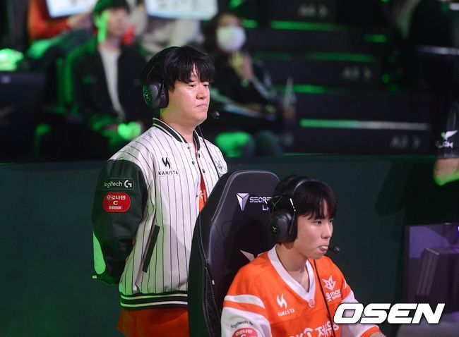 [OSEN=종로, 고용준 기자] T1을 상대로 거둔 짜릿한 승리가 독이 든 사과가 된 결과가 나왔다. 귀신같이 지난 경기 브리온의 모습이 삭제됐다. 최우범 감독은 “너무 이기고 싶은 마음이 컸다. 내 선택이 좋지 못했다”며 자신을 자책했지만, 주전 원딜이 바뀐 디알엑스에게 당한 패배는 너무나 뼈아픈 결과였다.