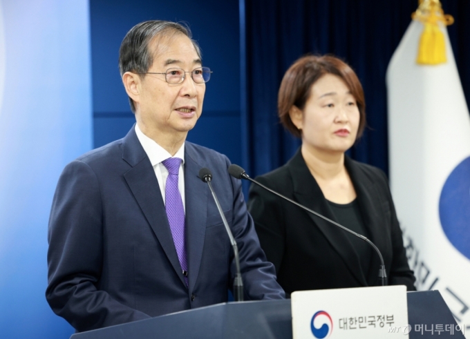한덕수 대통령 권한대행 국무총리가 1일 서울 종로구 정부서울청사에서 대국민 담화를 하고 있다. 2025.05.01. /사진=뉴시스 /사진=고범준 |
