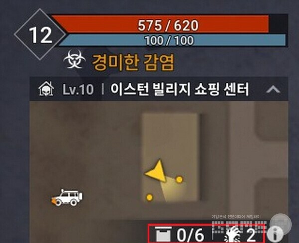 게임을 진행하다 보면 여러 집안을 뒤며 아이템을 파밍하고 좀비와 전투를 펼치게 된다. 그런데 좀비와 집안에 존재하는 아이템 숫자를 확인할 수 있다. 화면 좌측의 미니맵에는 아이템 상자와 손 모양의 아이콘이 존재한다. 이 아이콘이 바로 집안에서 얻을 수 있는 아이템 상자의 숫자를, 손가락은 좀비 숫자를 나타낸다. 손가락 수만큼 좀비를 사냥하면 해당 집에서 안전을 확보할 수 있다. 이제 여유롭게 아이템 상자를 열려 파밍할 시간이다. 단 안전확보를 했다고 해도 방심하면 안된다. 이 게임의 건축물은 가까운 거리에 위치한 경우가 많아 총소리를 듣고 근처의 좀비들이 덤벼들 수 있기 때문이다. 따라서 안전확보 문구가 나와도 방심하지 않는 것이 좋다.