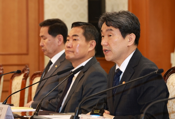 이주호(오른쪽) 대통령 권한대행 부총리 겸 교육부 장관이 2일 정부서울청사에서 긴급 국가안전보장회의(NSC)를 하고 있다. 연합뉴스 |