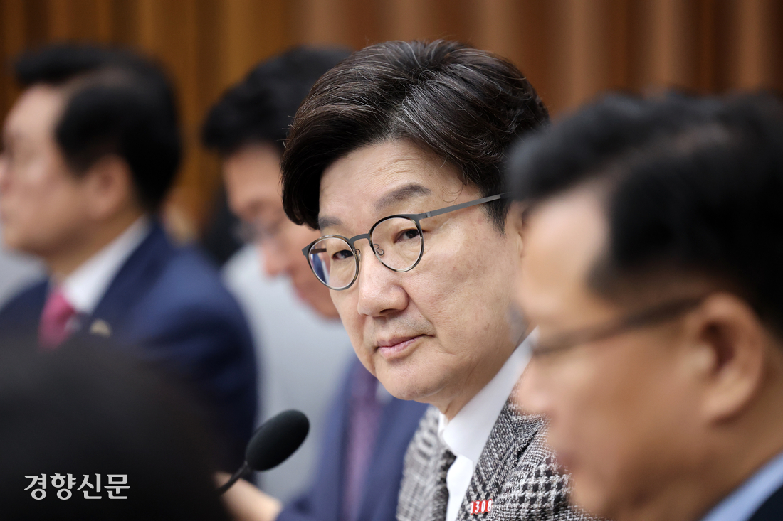 권성동 국민의힘 원내대표(오른쪽 두번째)가 당 원내대책회의에서 발언하고 있다. 박민규 선임기자 |