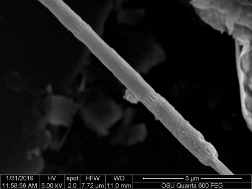 미국 오리건주립대학 연구팀은 전선처럼 생긴 케이블 박테리아를 발견해 카 일렉트로스릭스 야코넨시스(Ca. Electrothrix yaqonensis)라고 명명했다. 사진은 이 박테리아를 전자 현미경으로 확대한 모습. 출처=챙 리 박사 연구팀 |