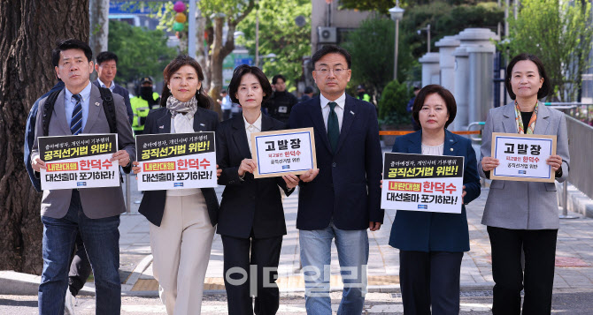박은정 의원을 비롯한 조국혁신당 의원들이 2일 오전 대선 출마를 위해 사퇴한 한덕수 대통령 권한대행 국무총리를 공직선거법 위반 혐의로 고발하기 위해 서울 서대문구 경찰청 국가수사본부 민원실로 향하고 있다.(사진=뉴스1) |